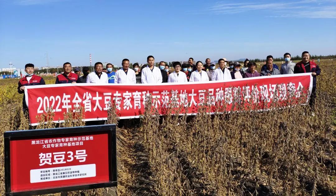 观摩现场,大豆专家组从熟期、抗性、产量、品质等方面对32个大豆品种进行了田间鉴评,经过专家组评定,贺豆25、贺豆3、佳豆30、龙垦309、龙达157、垦豆131等6个品种田间表现秆强抗倒、结荚密、顶荚多、丰产性状好,被评为本次现场观摩会优秀品种并作为本次观摩会的重点推荐品种。