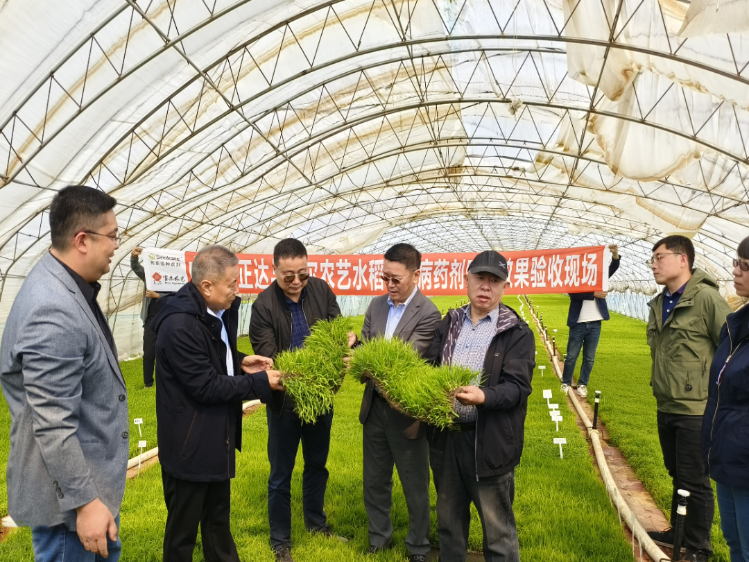 注:双方技术人员共同见证先正达“凌跃”水稻恶苗病防治效果。