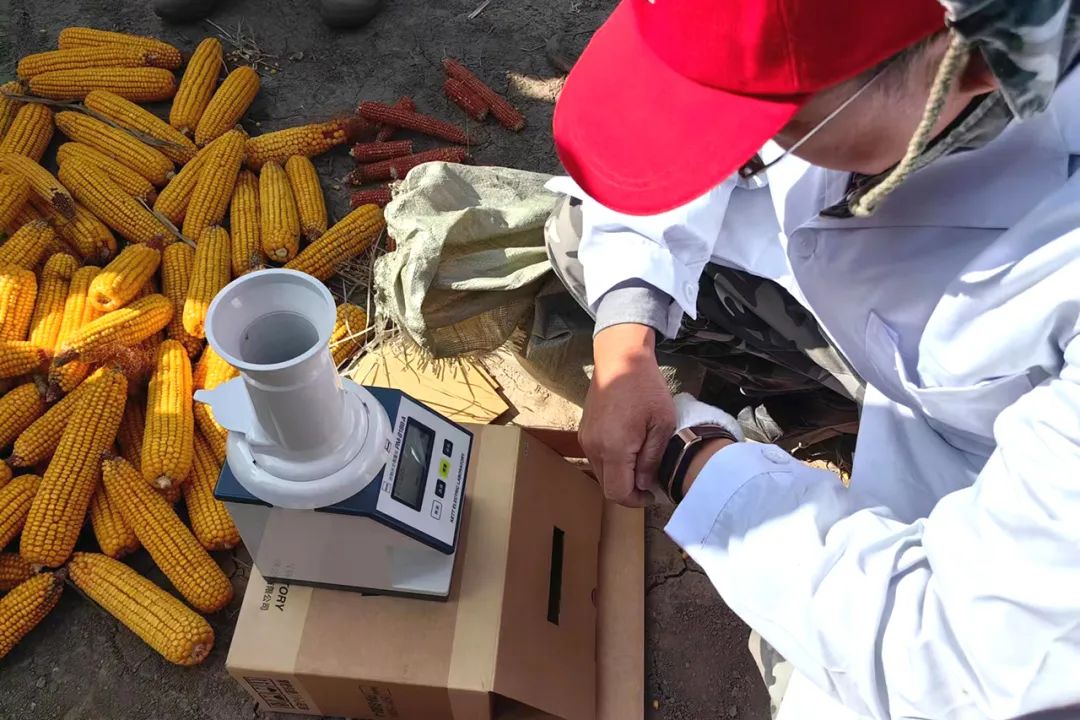 专家组根据农业农村部玉米专家指导组和全国玉米栽培学组共同制定的《关于玉米高产、超高产田间测产验收方法和标准》,对“S1602”玉米展开现场标准化的实收测产。在100亩“S1602”示范田中随机选取15亩,采用3点取样法,每个点平均在50平方米以上,收取样点果穗,实测平均亩实收籽粒鲜重1149.61公斤,用“PM-8188”型谷物水分测定仪测定籽粒含水量,籽粒含水量29.67%,折合标准籽粒含水量14%后计算,实测亩产为940.17公斤。