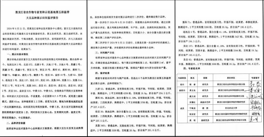 注:2024年黑龙江省农作物专家育种示范基地第五积温带大豆品种展示田间鉴评报告